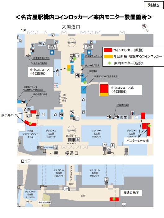 ※桜通口地下コインロッカーの一部の案内システムおよび交通系電子マネー対応、バスターミナ ル南と桜通口地下への案内モニター設置は4月下旬の予定です。